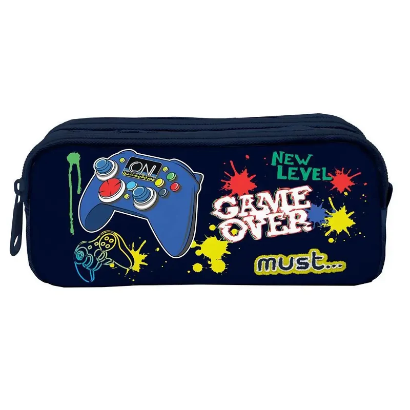 A Game Over henger alakú, 2 rekeszes tolltartó tökéletes választás minden kis gamereknek, akik nemcsak a konzol előtt, de az iskolában is szeretik a menő stílust! A sötétkék alapszínt élénk színes festékpaca minták és játékvezérlős grafikák díszítik, így igazán vagány megjelenést biztosít. A „GAME OVER” és „NEW LEVEL” feliratok is azt sugallják, hogy a tanulás is lehet izgalmas küldetés!