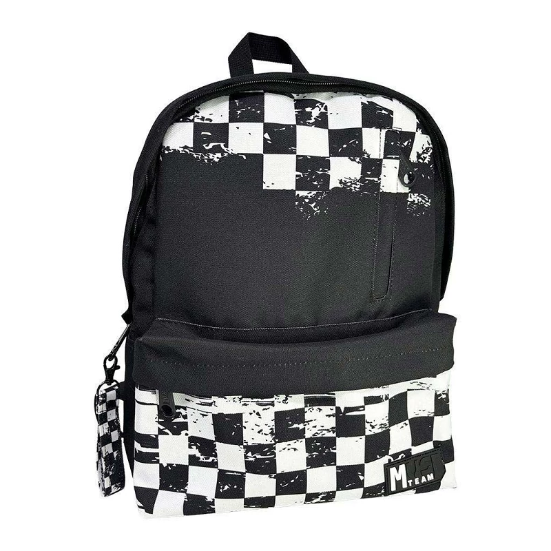 A Chessboard lekerekített hátizsák a Must Team kollekcióból nemcsak stílusos, de rendkívül praktikus is – ideális választás felső tagozatos diákok vagy középiskolások számára. A fekete-fehér sakktáblaszerű minta modern, kissé „street style” hatású dizájnt ad a táskának, amit a kopott hatású grafika és a minimalista logó még vagányabbá tesz. A dizájn a hátsó pántokon is folytatódik, így minden részlet egységes és karakteres.