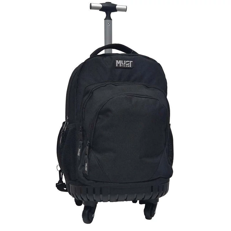 Luna: Must Team Fekete 3 rekeszes gurulós iskolatáska, hátizsák 31x24x45cm