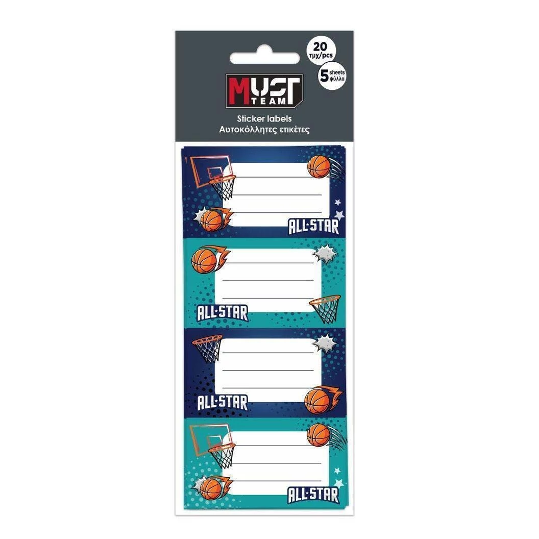 Luna: Must Team Kosárlabda mintás füzetcímke 20db-os csomag