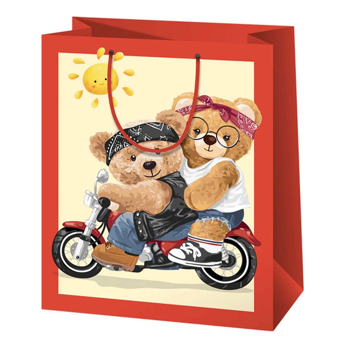 Maci család motorkerékpáron mintás közepes ajándéktáska 18x10x23cm