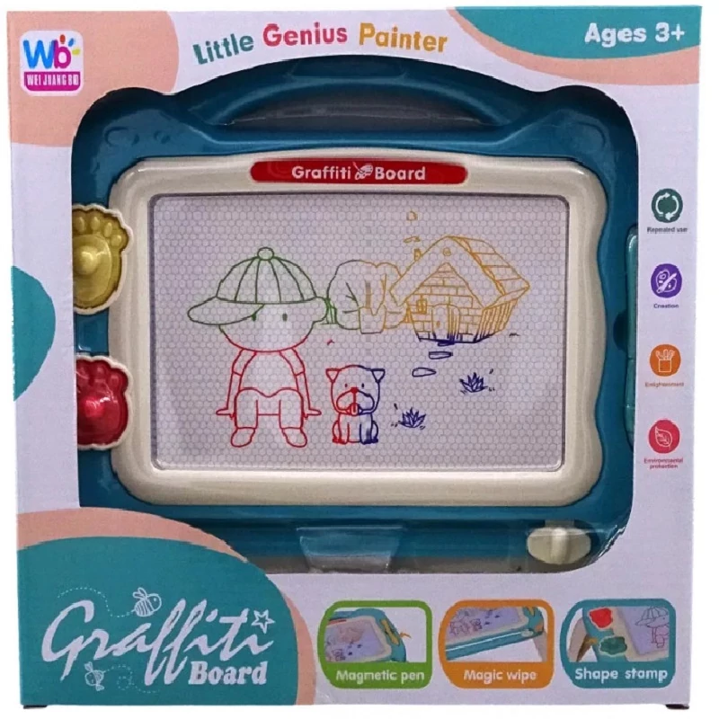 Fedezze fel a kreatív szórakozás új dimenzióját a mágneses rajztáblánkkal! Ez a praktikus rajztábla nemcsak szórakoztató, hanem rendkívül könnyen használható is. A táblát egyszerűen letisztíthatja az alsó fogó elhúzásával, így gyerekjáték a korábbi alkotások eltávolítása és a következő kreatív munkához való előkészítés.