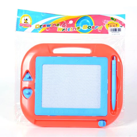 Egy soha ki nem fogyó ceruza? Ezzel a rajztáblával lehetséges, hiszen mágneses kivitelezésű rajztábla lévén a tollal bármennyit rajzolhatunk és írhatunk erre a táblára. A rajztábla kényelmes fogót is kapott, valamint egy ceruzatartót, ami még oda is van fogatva egy zsinórral ,hogy biztosan ne tűnjön el használat közben. Ezen kívül még két forma is megtalálható benne, amivel nyomdázni lehet a rajzfelültre, ami ha betelt, csak el kell húzni a csúszkát és ezzel le is töröltük az eddigi alkotásokat. Remek lehet a számok, formák és betűk rajzolásának gyakorlására.