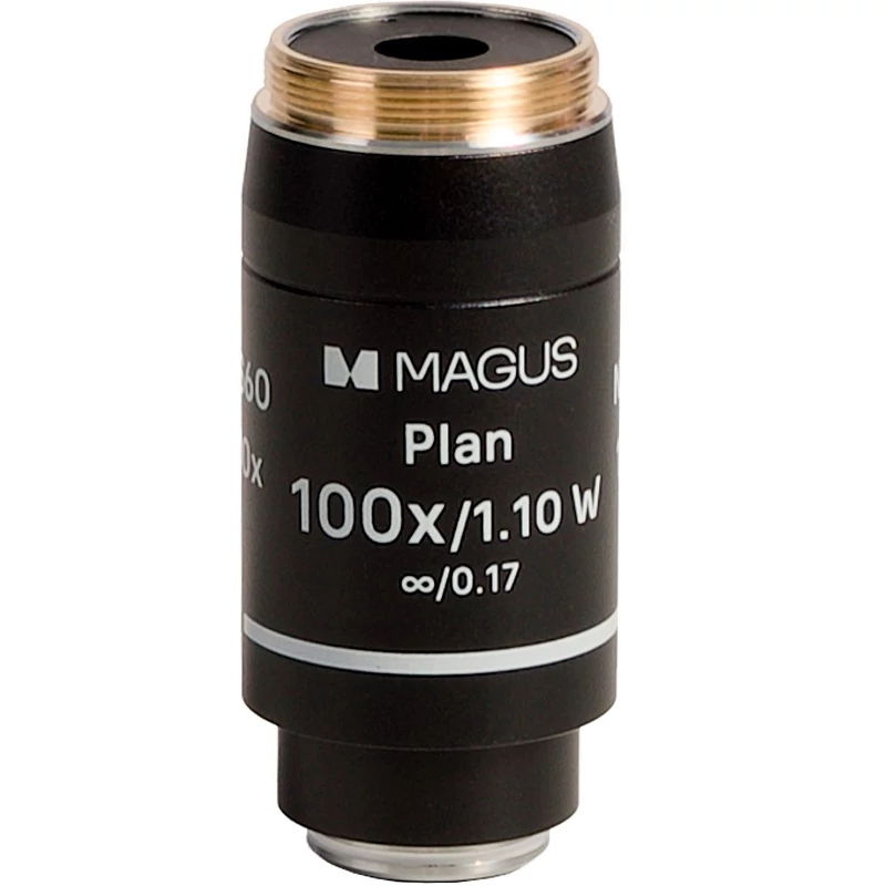A 100х/1,10 objektív felbontási határa 0,26 μm. A kromatikus aberráció a kék és a piros, a szférikus aberráció a zöld esetében, a látómező görbülete pedig a látómező átmérőjének 90%-ában korrigálódik.