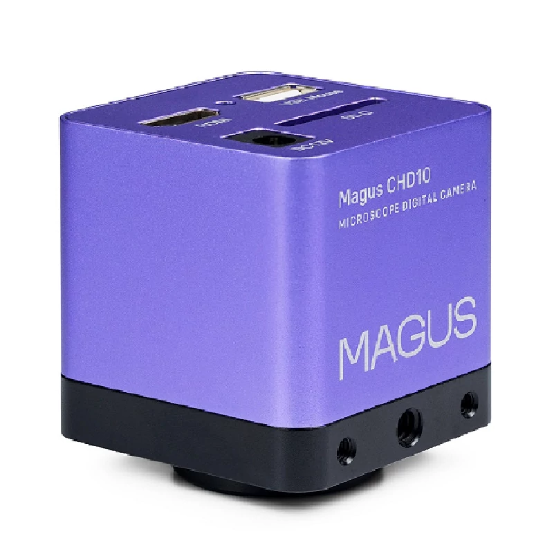 A MAGUS CHD10 a MAGUS termékcsalád belépő szintű HDMI kamerája. A készüléket mikroszkópra szerelheti, és a segítségével fényképeket és videókat készíthet, feldolgozhatja az eredményeket, és akár meg is mérheti a vizsgált objektumokat. A videófelvétel 60 képkocka/mp sebességgel történik, ami még mozgó tárgyak megfigyelésekor is zavarás és torzítás nélküli, kiváló minőségű Full HD képet (1920x1080 képpont) eredményez. Az eredmény valós időben megjeleníthető a képernyőn, és akár SD-kártyára is elmenthető.