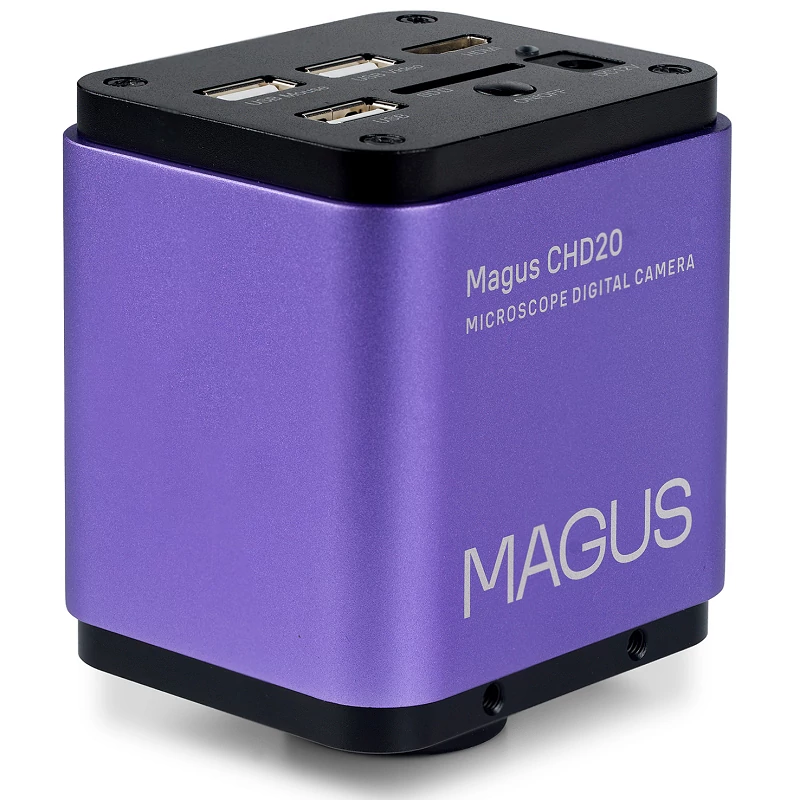 A MAGUS CHD20 termék egy mikroszkópra szerelhető digitális kamera. Kutatási fényképek és videók rögzítésére és szerkesztésére tervezték, valamint az objektumoknak és azok szerkezeteinek a lineáris és szögmérésére is alkalmas. Az eszköz saját szoftverrel rendelkezik, így nemcsak számítógéphez, hanem közvetlenül egy külső képernyőhöz is csatlakoztatható. Ezért a kamera kétféle interfésszel rendelkezik: HDMI és USB.