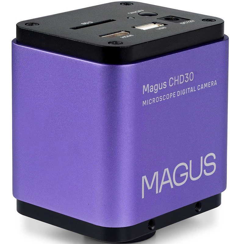 A MAGUS CHD30 kamerát mikroszkópokkal való használatra tervezték. Segítségével fényképeket és videókat készíthet a megfigyelt objektumról (és szerkesztheti is a felvételeket), valamint akár a méreit is lemérheti. A kamera különlegessége, hogy Wi-Fi kapcsolaton keresztül párosítható számítógéppel, HDMI-porton keresztül pedig külső képernyővel. A képkockasebesség 25, illetve 60 képkocka/mp. Ha csatlakoztatva van egy külső képernyő, a kamera automatikusan az objektumra fókuszál, így megkönnyíti a felvételek elkészítését és jobb eredményeket biztosít. Az eszköz önállóan is képes működni, és Full HD képek (1920x1080 képpont) készítésére alkalmas. A nagy képkockasebesség és a Full HD együtt kiváló képminőséget biztosít interferencia és torzítás nélkül.