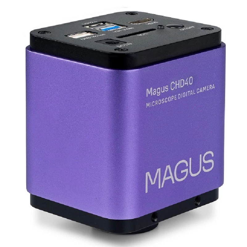 A MAGUS CHD40 olyan kameratípus, amelyet mikroszkóppal történő integrációra terveztünk. A kamera 4K-s felbontásban (3840x2160 px) készít felvételeket, amelyeket automatikusan konvertál Full HD (1920x1080 px) formátumba, ha a külső monitor ezt igényli. A berendezés három különböző típusú interfésszel rendelkezik: Az egyik a HDMI, a TV, a monitor vagy a projektor csatlakoztatására, a második és harmadik pedig az USB 3.0 és a Wi-Fi, amelyeken keresztül számítógép csatlakoztatható. A képkockasebesség 30 fps, a csatlakozás típusától függetlenül. A kamerában beépített szoftver található, ami a fényképek és videofelvételek készítése mellett lehetővé teszi, hogy szerkeszthesse is a képeket, sőt, a megfigyelt tárgyat meg is mérheti. A berendezés kiváló minőségű képeket készít, késés vagy szakadozás nélkül. Az objektum láthatóan tiszta és torzulásmentes, még akkor is, ha az mozgásban van.