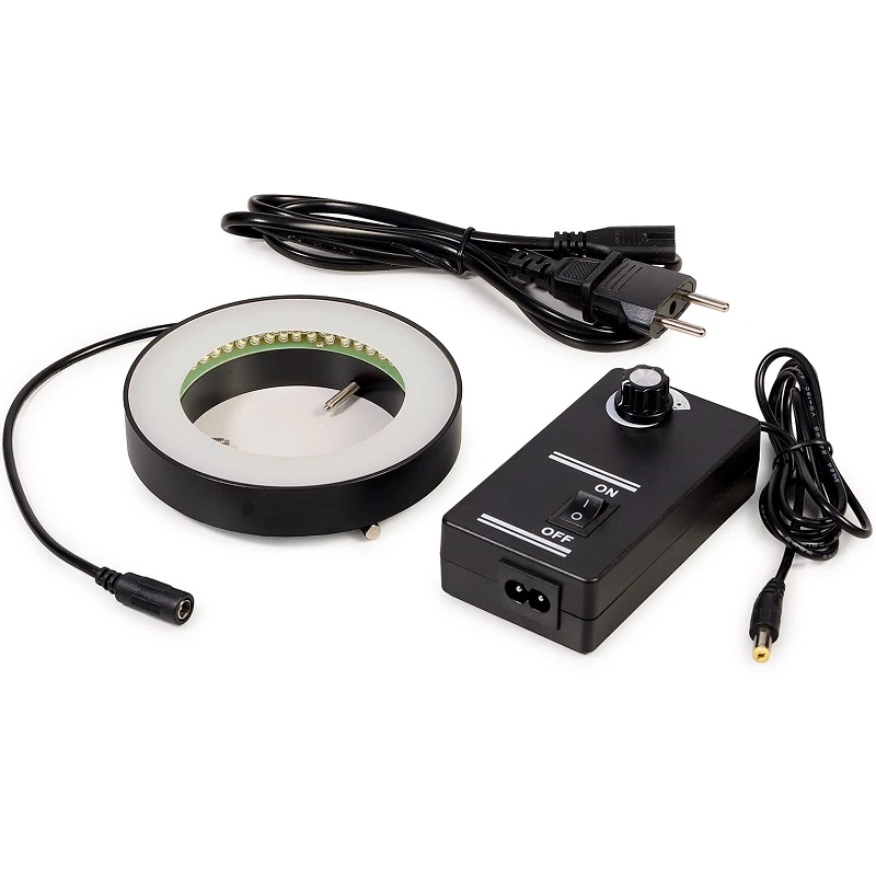 A matt diffúzorral ellátott LED-es gyűrű alakú lámpát úgy terveztük meg, hogy a visszavert fénnyel erősen, egyenletesen és árnyékmentesen világítson meg egy adott objektumot. Közvetlenül a CMO sztereomikroszkóp objektívjéhez van rögzítve, így a fénysugár koaxiálisan tud haladni. Ez különösen fontos szempont a lapos, fényes vagy alacsony kontrasztú minták megfigyelése során.