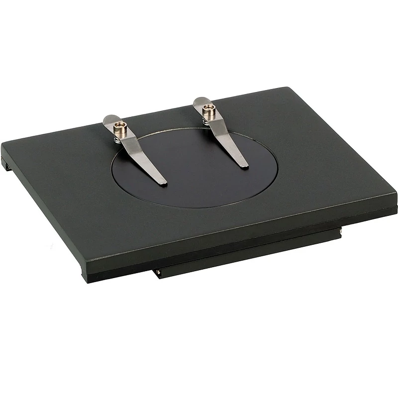 A tárgyasztal a sztereomikroszkóp talapzatába kerül, a mintának az objektív alatt történő pontos és egyenletes mozgatására és a megfigyelések kamerával történő rögzítésére szolgál. A koaxiális gombok forgatásával lehet a mintát az X (jobbra/balra) és Y (előre/hátra) tengelyen mozgatni. A tárgyasztal átlátszó üveg felülete visszavert és áteső fényben történő munkavégzést is lehetővé tesz. Egy tengelyes mérések végzéséhez nóniusz skála áll rendelkezésre. Lapos minták rögzítésére két mintatartót használnak.