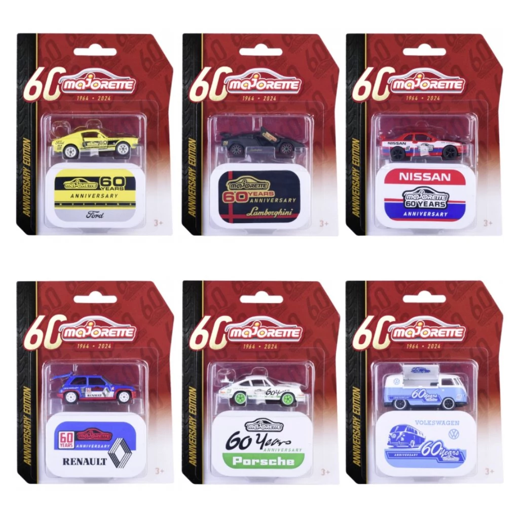 A Majorette 60. évfordulós kisautók gyűjtemény egy különleges kiadás, amely a klasszikus és ikonikus autómárkákat ünnepli, köztük a Fordot, Lamborghinit, Nissant, Renault-t, Porschét és Volkswagent. Minden kisautó egyedi 60. évfordulós dizájnnal készült, amely igazi ritkasággá teszi ezeket a modelleket. A kisautók fémből és műanyagból készültek, részletes kidolgozottságuk pedig lenyűgözi a gyűjtőket és a gyerekeket egyaránt. A modellek egy díszdobozban érkeznek, amely kiemeli a jubileumi kiadás különlegességét. Az ár egy darab autóra vonatkozik, és a vásárlás során a megjegyzés rovatban jelezhető, melyik változatot szeretnétek.