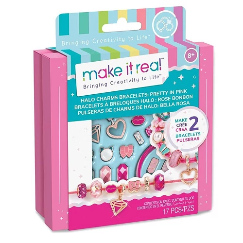Make It Real: Ékszerkészítés, halo charm karkötők pink tárolóban