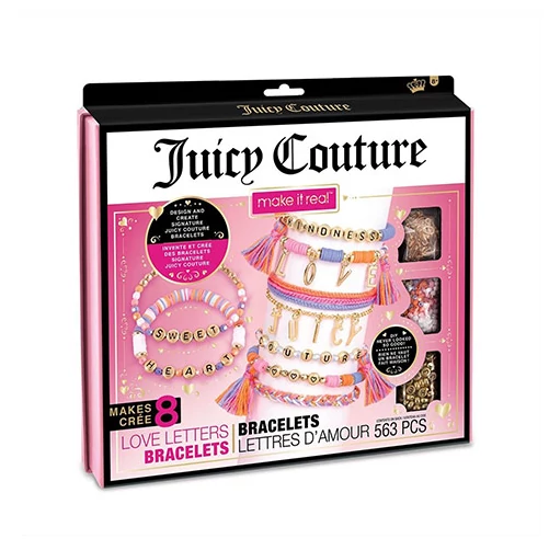 Egy Juicy Couture ruha mellé nagyon jól jönne egy karkötő is. Viszont ha a karkötő annyira jól néz ki, hogy mindenki rád figyel már nem is számít annyira ha az amerikai ruhagyártó cég öltözékét viseled. A Juicy Couture karkötőkből egy egész széria lett megtervezve és mindegyik más elemeket, kiegészítőket tartalmaz. Ebben a csomagban, betűket találunk több méretben, gyöngyöket és más kisebb kiegészítőket. Ilyenkor már csak a kislányok kreativitására van szükség, hogy megszerkesszék a legcsodálatosabb, egyedi karkötőt, amelyet mindenhol viselni fognak, de akár többet is alkothatnak hiszen a szett 563 elemet tartalmaz.