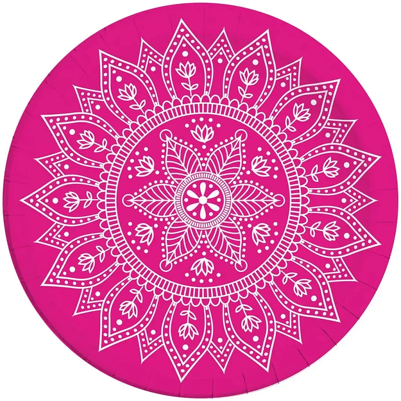 Mandala fukszia-fehér 8db-os papírtányér szett 23cm-es