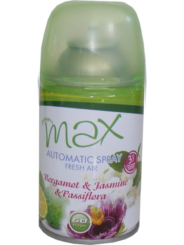 - MAX légfrissítő utántöltő Bergamott-jázmin-golgotavirág illatú, 260ml-es kiszerelésben.