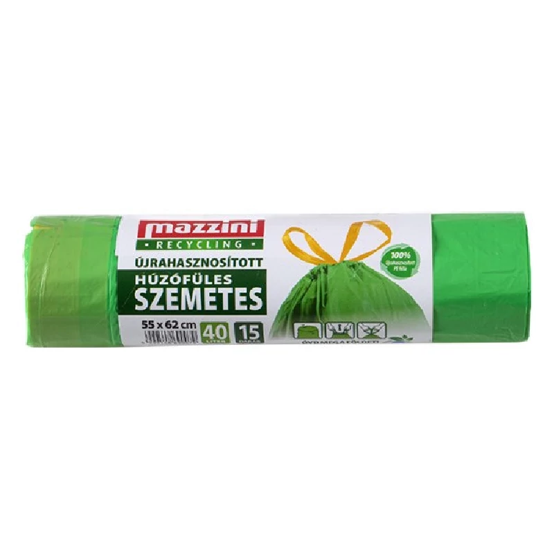 Mazzini 40L-es újrahasznosított húzófüles szemeteszsák 15db