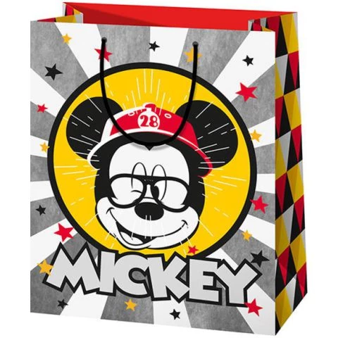 Ha egy igazán látványos és egyedi ajándéktáskában szeretnéd átadni meglepetésedet a számodra fontos személynek, akkor ez a retro Mickey egér mintával dekorált díszzacskó lesz a tökéletes választás számodra. A táska erős zsinór fülekkel és erősített alsó résszel készül, hogy még a belerakott nehezebb dolgokat is biztonsággal vihesd magaddal és a felülete fényes laminálással van ellátva, mely megvédi a szennyeződésektől és még szebbé teszi a mintát.