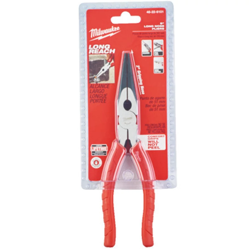 Hosszúcsőrű lapos fogó - fogáshoz, huzalcsupaszításhoz a nehezen elérhető helyeken Vezetékek vágása - akár 2,5 mm-es kábelt is vág Sorjázás - Sorjátlanító bordák a fejen, akár 20 mm csövek sorjátlanításához. Nem szükséges másik szerszám Szöghúzó A fogazott pofák jobb befogást és kiváló ellenőrzést biztosítanak Lézerrel edzett tartós vágóélek Króm-vanádium acélból készült Ergonómikus és tartós gumibevonatú markolat a kényelmesebb használatért Long nose pliers Csomagok száma 1 Kábel átmérő (mm) 6.0 Sorjázó fej max. átmérő (mm) 18 Súly (uncia) 255 Szorító pofák hossza (mm) 51 Teljes hossz (mm) 210 Vágási kap. közepes keménységű huzalban (mm) 2.5 Vágási kapacitás kemény huzalban (mm) 2.5