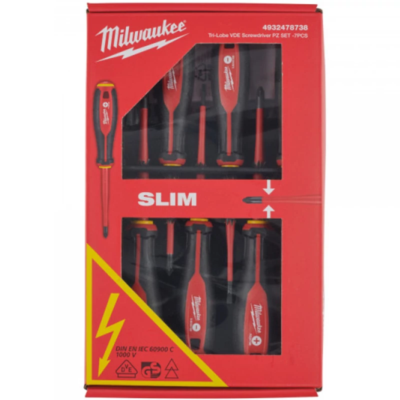 Jellemzők VDE tesztelve 10 000 V-nál, 1000 V-ra hitelesítve Keskeny átmérő lehetővé teszi a nehezen elérhető helyeken lévő csavarokhoz történő hozzáférést. 3 oldalú markolat a kényelmes használatért és nagy nyomatékú alkalmazásokhoz Az azonosító jelölések lehetővé teszik a szerszám gyors beazonosítását Elforgást gátló 3 oldalas perem a markolaton Rögzítő kötélnek kialakított lyuk a biztonsági rendszerhez való egyszerű rögzítéshez Technikai adatok Mennyiség a csomagban1 TartalomSL2.5 / SL3 / SL4, PH2, PZ1 / PZ2 és feszültségmérő Cikkszám4932478738 EAN kód4058546360207
