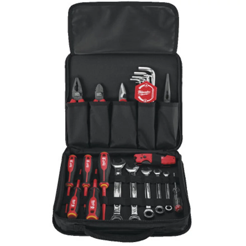 A KÉSZLET TARTALMA: MILWAUKEE Fázisceruza SL 0,5 x 3 x 65 mm 1 db MILWAUKEE Csavarhúzó 1000 V-ig szigetelt Tri-Lobe PH2 x 100 mm 1 db PH1 x 80 mm 1 db SL 1,0 x 5,5 x 125 mm 1 db SL 0,8 x 4 x 100 mm 1 db SL 0,5 x 3 x 100 mm 1 db MILWAUKEE Fogó készlet 1000 V-ig szigetelt 1 db MILWAUKEE Imbuszkulcs készlet 9 részes 1 db MILWAUKEE MAX BITE™ Csillag-villáskulcs 8 mm / 140 mm 1 db 10 mm / 158 mm 1 db 13 mm / 180 mm 1 db 17 mm / 225 mm 1 db 19 mm / 250 mm 1 db MILWAUKEE Villanyszerelő olló (blankoló / krimpelő) 1 db MILWAUKEE Összecsukható kés 6 az 1-ben 1 db