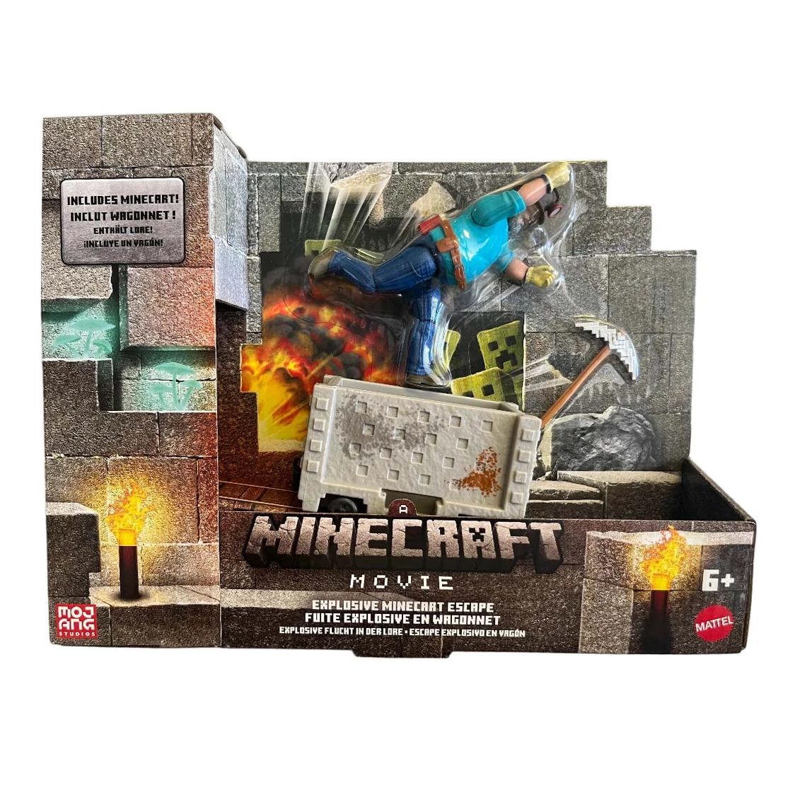 A készlet része egy bányakocsi is, amelyhez Steve tökéletesen illeszkedik, így a kicsik eljátszhatják a film ihlette menekülést a robbanások közepette. A szetthez tartozó ikonikus csákány is a gyerekek kezébe adja az irányítást: akár képzeletbeli blokkokat bányásznak, akár creeper elől menekülnek, a lehetőségeknek csak a fantázia szab határt.