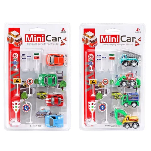 Mini Car: Hátrahúzós kisautó szett 4db-os kétféle változatban