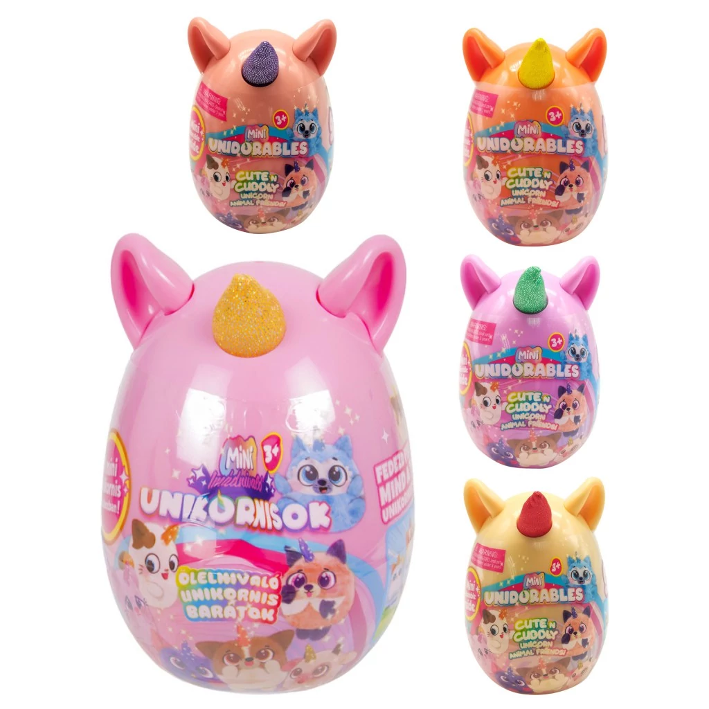 Bemutatjuk egy fantasztikus játékot, ahol minden gyermek felfedezheti a plüss egyszarvúak varázslatos világát! Ezek a szuper puha, ölelnivaló kis unikornisok mindenkit elvarázsolnak aranyos tekintetükkel és csillogó szarvukkal. A színes plüssfigurák egy meglepetéstojságban érkeznek, így a kicsiknek dupla meglepetésben lesz részük: kibontani a tojást és felfedezni, melyik unikornist találják meg. A csomaghoz mellékelt matricák további kreatív játékra adnak lehetőséget.