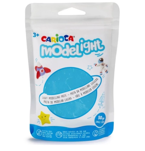 Kicsik és nagyok számára egyaránt remek választás ez az 50g-os világoskék gyurmacsomag, mely számtalan modell megalkotásakor nélkülözhetetlen a gyurma eszköztárunkban. A Modelight gyurmák nem hagynak nyomot a kézen, szuperpuha anyaguknak köszönhetően könnyedén gyúrhatók, alakíthatók és a színek akár vegyíthetők is. A gyurma a levegőn szárad, így az alkotás tartós marad, viszont víz hozzáadása után újra használható lesz. A gyurma gluténmentes és már 3 éves kortól használható.