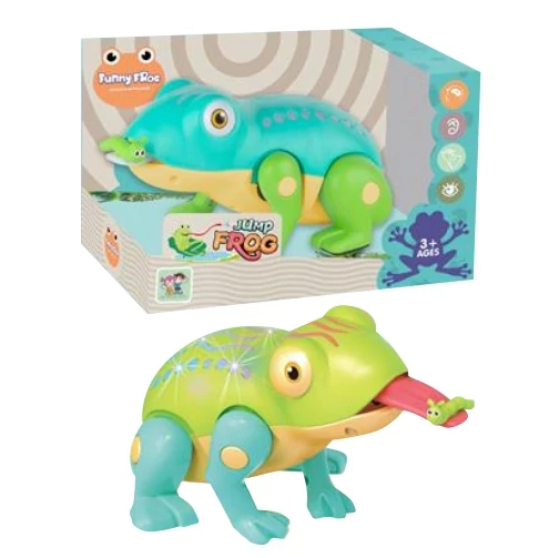 A gyerekek tetszését biztosan elnyeri ez a fantasztikus interaktív breki, aki akárcsak egy igazi béka, mozog és ugrál. A béka előre megy és néha hatalmasakat ugrik, miközben a szájánál található legyet is bekapja. A hátán és fején lévő minták működtetés közben élénk színűen világítanak, így még jobb játékélményt biztosítva a gyerekeknek.