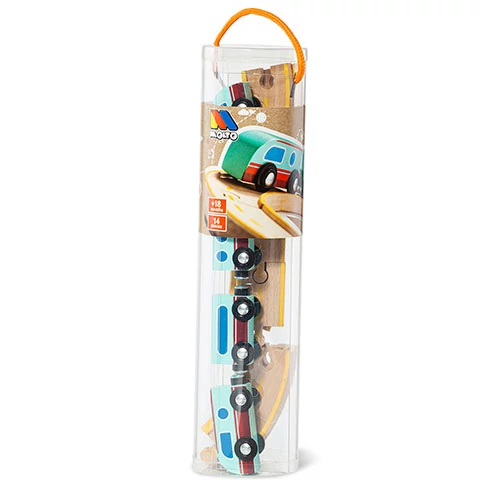 Minden vasútrajongó kisgyerek örülni fog egy ilyen vonatos játéknak, hiszen nem csak egy vonat, hanem egy pálya is található a csomagban. A fából készült szerelvény négy kocsiból áll, amelyeket mágnessel lehet összekapcsolni, és természetesen a vonat mellett egy ovális pálya is a csomag része, amit a kicsik könnyedén egyedül is össze tudnak illeszteni. A Molto Fából készült játékait az FSC-nek megfelelően, fenntartható módon kiválasztott anyagokból és környezetbarát gyártási eljárással gyártja. A Molto Nature fajátékok kézzel festettek, nem mérgező, vízbázisú festékekkel, és megfelelnek a legszigorúbb biztonsági előírásoknak, így a gyerekek biztonságban játszhatnak vele.