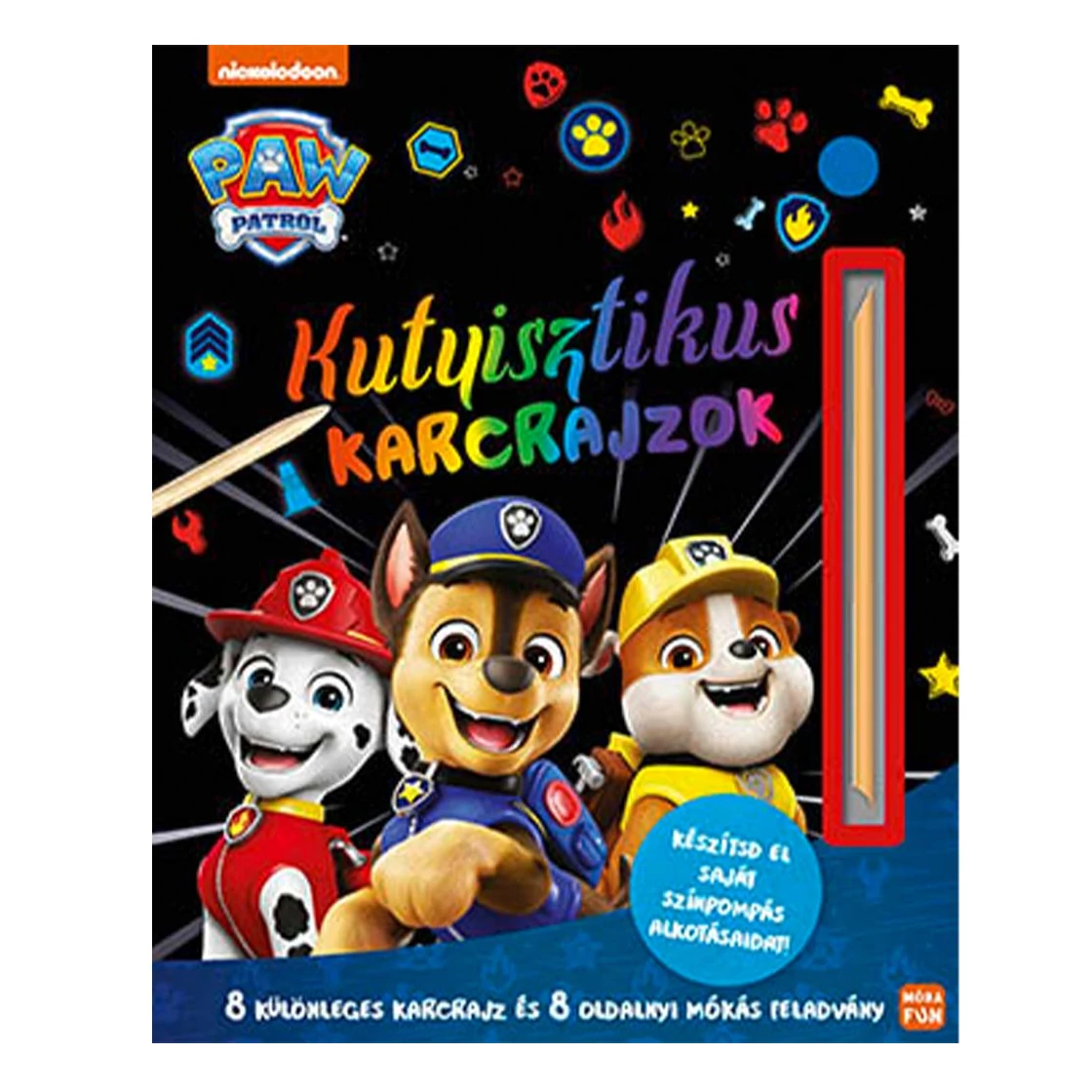 Ha szereted a Mancs Őrjárat hőseit és imádsz alkotni, akkor a Kutyisztikus karcrajzok című kreatív foglalkoztatókönyvet egyszerűen nem hagyhatod ki! Csatlakozz Chase-hez, Marshallhoz, Rubble-höz és a csapat többi tagjához egy igazán különleges kalandra, ahol nemcsak segíteni lehet, hanem alkotni is! A könyvben 8 elbűvölő karcrajz vár rád, amelyeket a mellékelt karcolópálca segítségével te kelthetsz életre, egyedülálló, színpompás alkotásokat hozva létre.