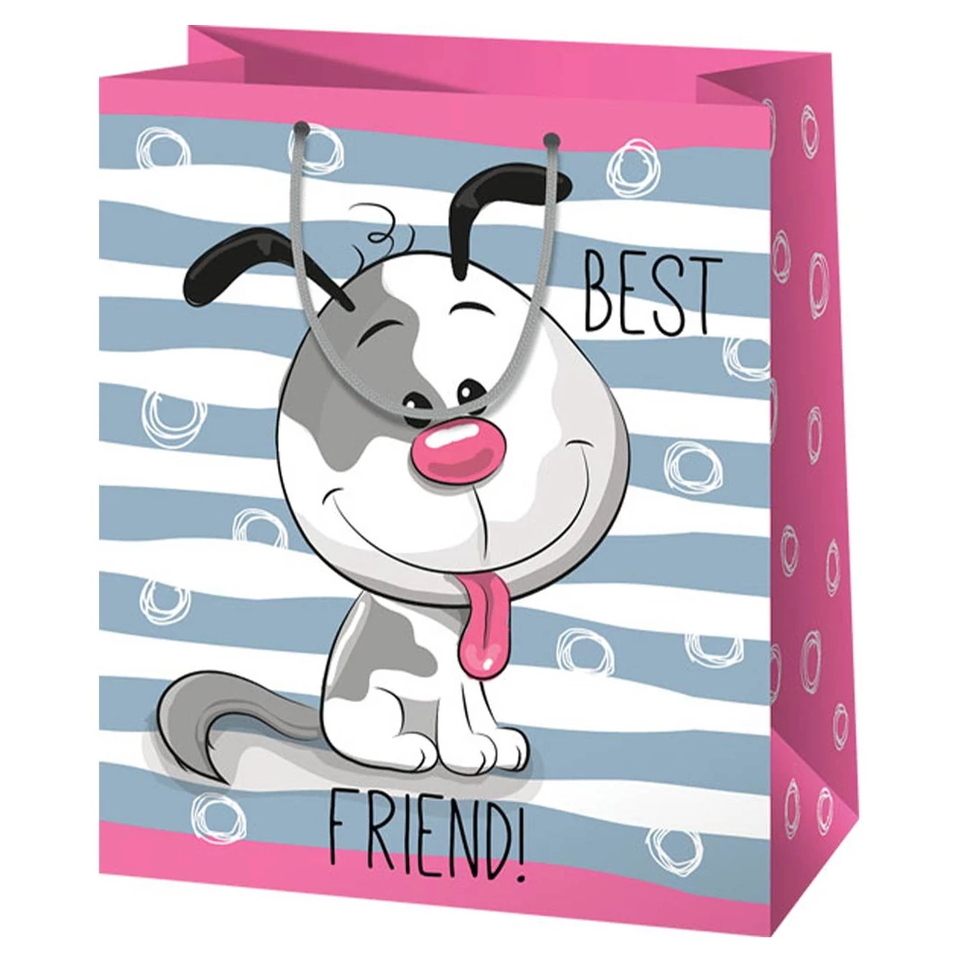 Mosolygós kutyás nagy méretű ajándéktáska 27x14x33cm-es