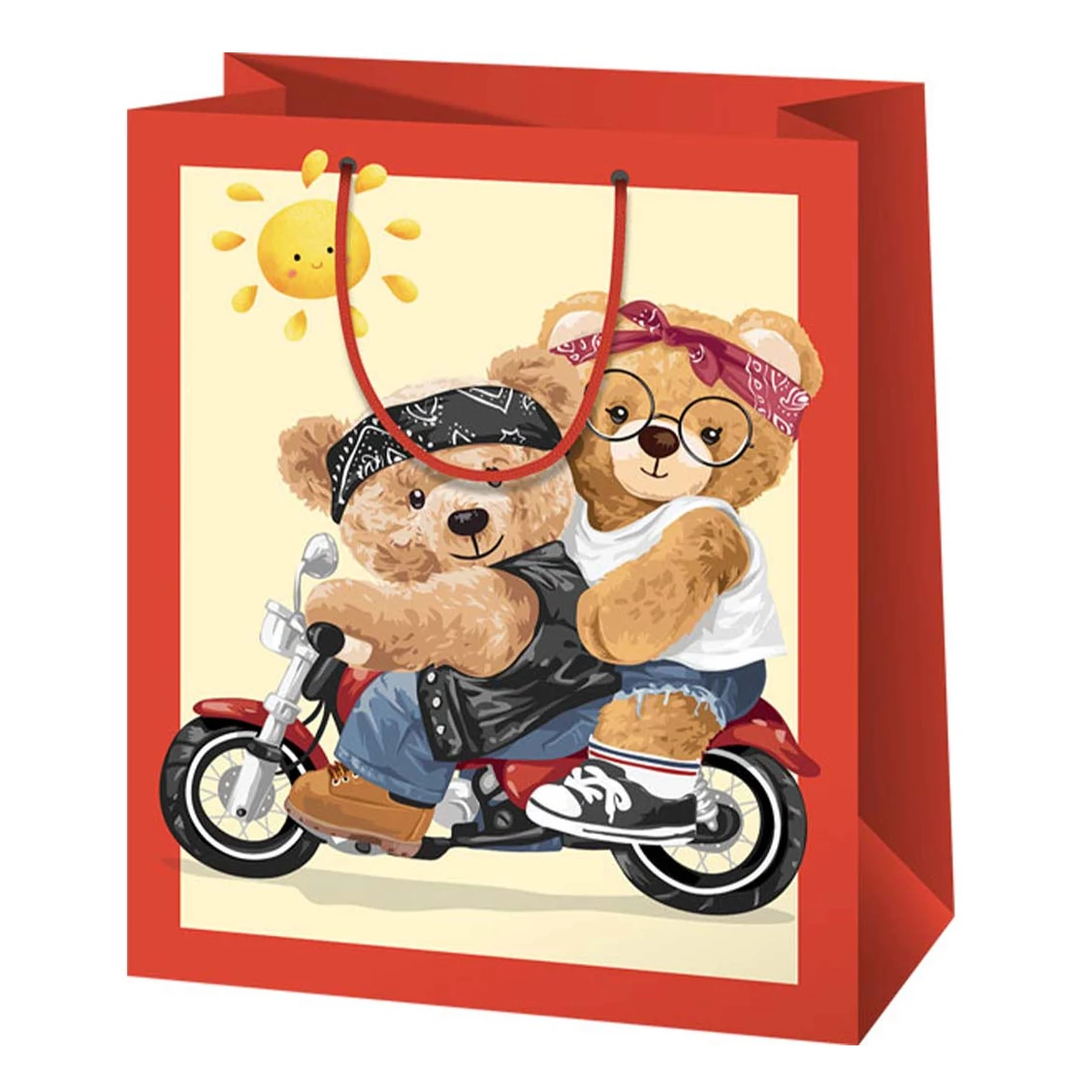 Motorozó mackók mintás nagy méretű exkluzív ajándéktáska 27x14x33cm-es