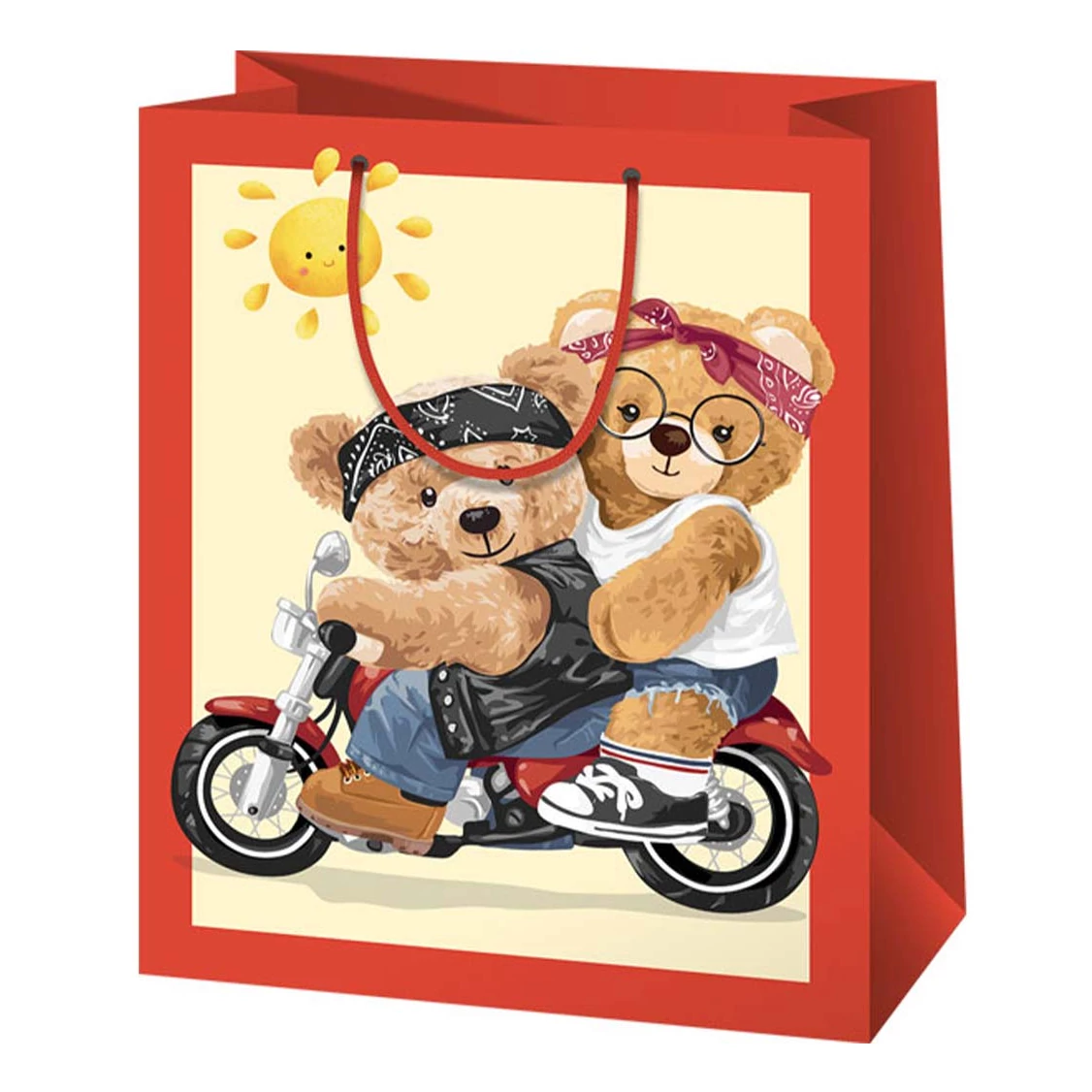 Motorozó mackók mintás normál méretű ajándéktáska 11x6x14cm-es