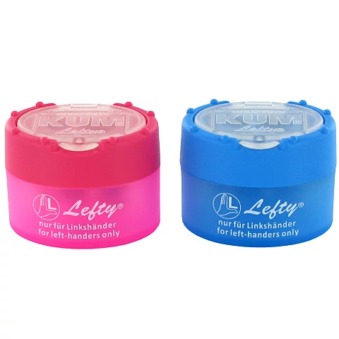 Kifejezettem a balkezesek számára kifejlesztett ez a két lyukú hegyező, melynek így helye lesz a gyerekek iskolaszerei között. A kék vagy rózsaszín színváltozatban is beszerezhető hegyező a 8, valamint 11 mm-es ceruzákhoz is tökéletes, a ceruzák testének formájától függetlenül. Használat közben a lefaragott darabok a tartályban gyűlnek, amit hegyezés után üríthetünk.