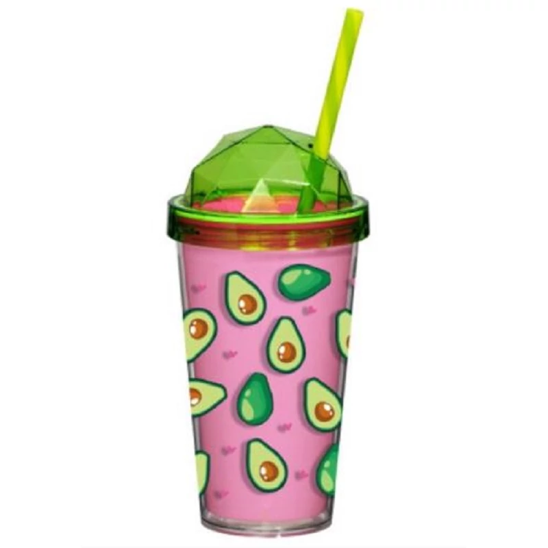 Műanyag pohár tetővel és szívószállal avokádós 540ml SO611