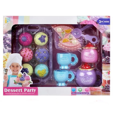 A kislányod imádni fogja ezt a szettet, ugyanis rengeteg tea délutánon lehet majd társa. A szettben találhat majd egy teáskannát, cukortartóval és csészékkel valamint kanalakkal, ami elengedhetetlen része lesz majd a partinak, valamint ezen kívül még egy tálcát és 6 különböző muffint is találhat benne, melyeket felszolgálhat a játék során. Ezeken kívül még egy tányér és két szelet sütemény is van benne, szerezd be és kezdődhet is a teadélután, ahova legjobb barátnőit vagy családját is elhívhatja.