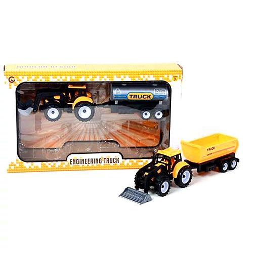 Izgalmas játék részesei lehetnek a gyerekek ezzel a szuper jármű szettel, melyben két különböző munkagépet is találnak. A jellegzetes sárga színben érkező munkagépek pótkocsikkal felszereltek, amelyek közül klasszikus pótkocsit és tartálykocsit is bevethetnek a játék során. A járművekkel megeleveníthetik a valódi munkafolyamatokat, ezáltal pedig érdekes szerepjátékba kezdhetnek a homokozóban vagy épp a szobájukban is.