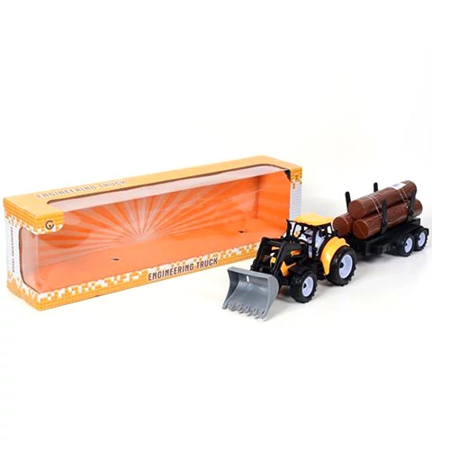 Ennek a homlokrakodóval felszerelt munkagépnek nem jelent nehézséget a rönkfák pakolása sem, a sebességről pedig a lendkerekes meghajtás gondoskodik majd a játék során. A sárga színű munkagép egy pótkocsin tudja maga után húzni a súlyos rakományt, így a legkisebbek is izgalmas játékba kezdhetnek a homokozóban vagy épp a szobában is. A szett része a 3db farönk, így a játék azonnal kezdetét veheti, és a munkagéppel akár terepet is rendezhetnek.