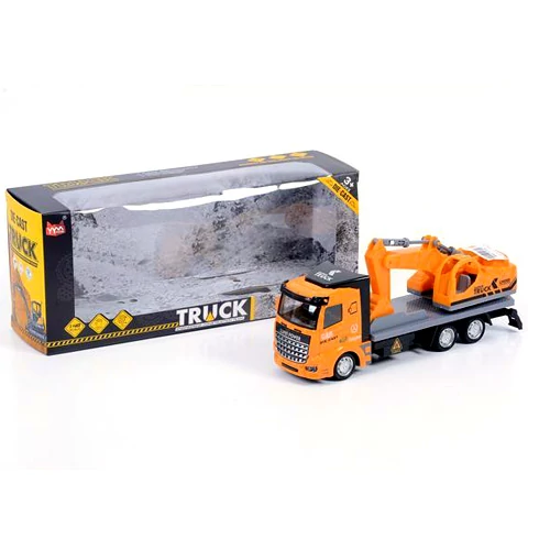 A munkagépek minden építkezésen nagyon hasznos munkaerőnek számítanak, de a sebességük és az irdatlan méretük miatt nem szoktak önerőből átmenni egyik munkaterületről a másikra, hanem egy praktikus szállító hátán teszik meg a hosszabb utakat. A teherautó az eredetivel megegyező, részletgazdag kidolgozást kapott, amihez az életszerű festések is párosulnak. A teherautó mérete nagyjából húsz centiméter, és minden kereke szabadonfutó, hogy a gyerekeknek a legnagyobb játékélményt biztosítsa.
