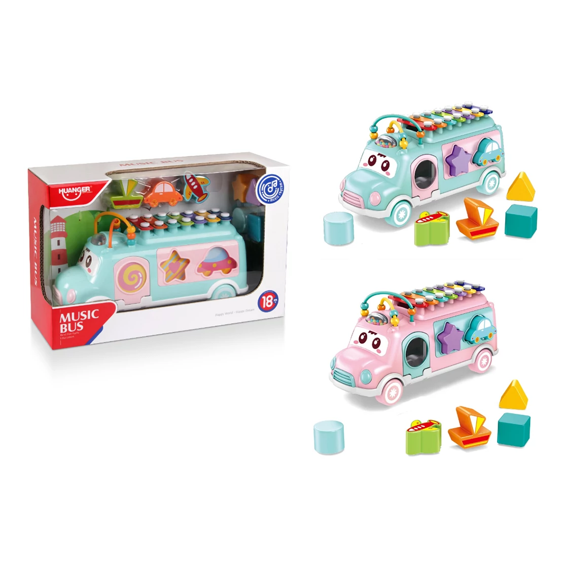Music World: Formabedobós készségfejlesztő busz xilofonnal