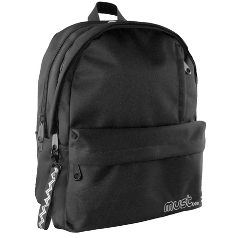 Must: Fekete négy rekeszes lekerekített iskolatáska, hátizsák 32x19x42cm