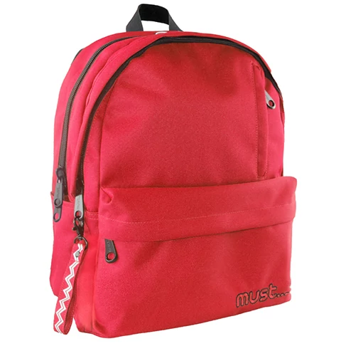 Must: Piros színű lekerekített négyrekeszes iskolatáska, hátizsák