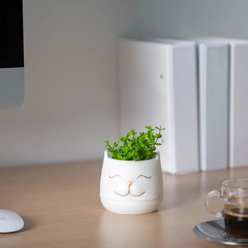 Művirág cicás kaspóban 3 féle változatban 9x14cm 11849