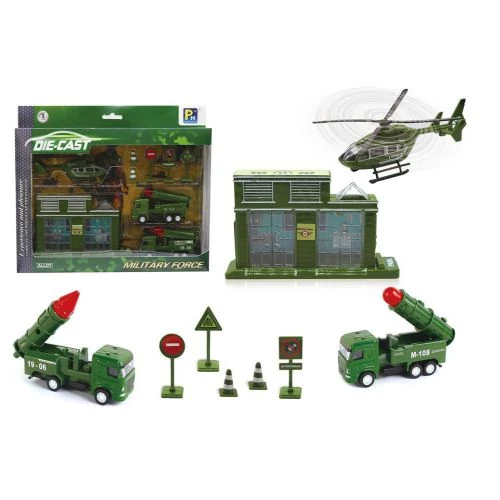 Izgalmas játékban lehet része a gyerekeknek ezzel a fantasztikus katonaság játékszettel, mely mindent tartalmaz ahhoz, hogy otthon is elkezdődhessen a bevetés. A készletben megtalálható a két darab rakétakilövő autó és a helikopter, ami a műveletek közben légi támogatást nyújthat a seregnek. A szett tartalmazza a laktanya épületét, valamint egyéb kiegészítőket is, amik a valóságban is nagy segítségére vannak a katonáknak a műveletek végrehajtása közben, mint például a bója vagy az útjelzőtáblák.