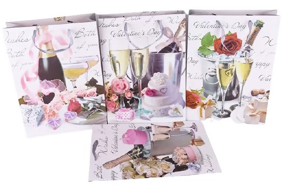 Nagy virágos ajándék tasak Valentin-napos változatban 30x42x12cm 277815