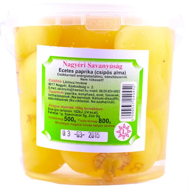 - Paprika, konyhasó, ecet, fűszerek, tartósítószerek (Na-ciklamát, Na-szaharinát)