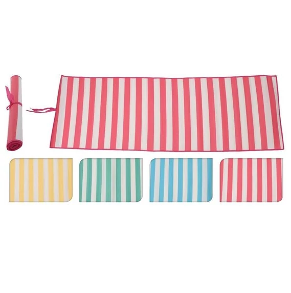 Gyönyörű strandszőnyeg fehér csíkos kék, sárga, zöld vagy piros színnel. Könnyen feltekerhető és magával viheti.