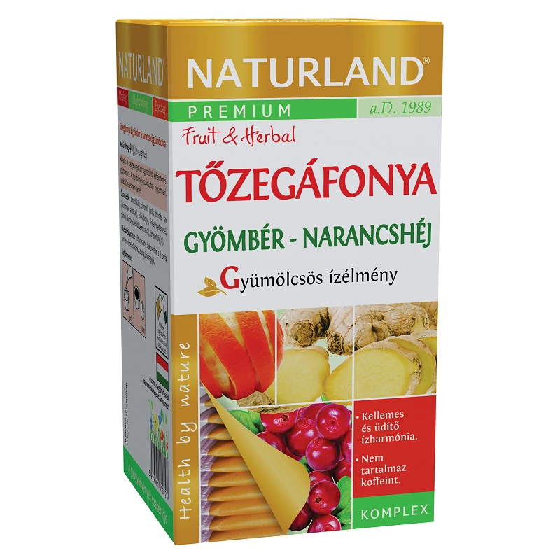 Naturland premium tőzegáfonya/gyömbér/narancshéj tea 40g