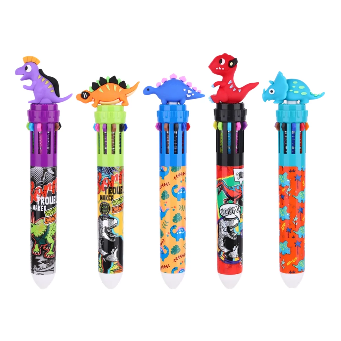 A Nebulo Baby Dinó 10 színű golyóstoll tökéletes választás, ha szeretnél egy igazán vidám, figyelemfelkeltő és praktikus írószert adni gyermeked kezébe, ami nemcsak hasznos az iskolában, de közben játékos is. Ez az aranyos, dinófigurás golyóstoll igazi sláger a gyerekek körében – színes mintái, cuki dinoszaurusz figurái és a 10 különböző színű betétje miatt minden kisiskolás imádni fogja!